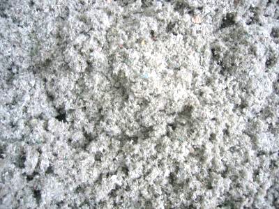 セルロースファイバーの主な材料は新聞紙で、綿状の木質繊維。それ自体が空気を内包していて熱を伝えにくい性質をもっています。